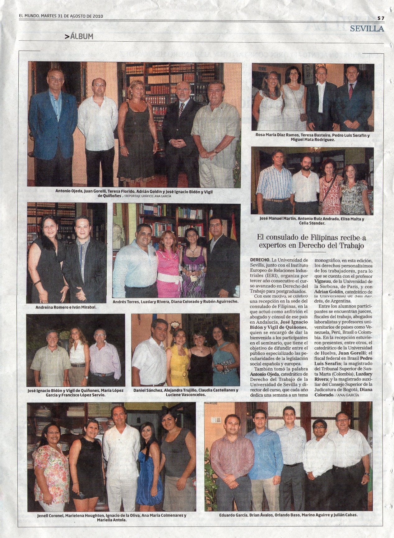 Curso de Postgrado que se realiza en la Facultad de Ciencias del Trabajo de Sevilla en septiembre de 2010, en donde el tema monográfico de la primera semana versa sobre los derechos fundamentales inespecíficos en la empresa: libertad, dignidad, intimidad, secreto, etc., de los trabajadores, frente a la libertad de empresa, y será impartido por los profesores Adrián Goldin (Universidad de Buenos Aires) y Cristoph Vigneau (Universidad de La Sorbona, París). Temas de las restantes semanas: Derecho Social Comunitario, Derecho Individual del Trabajo, Derecho Colectivo del Trabajo, Proceso laboral, Crisis de empresa. Otros profesores: Sala Franco, Monereo Pérez, Sanguinetti Raymond, Gorelli Hernández, Ojeda Avilés, Molina Navarrete.