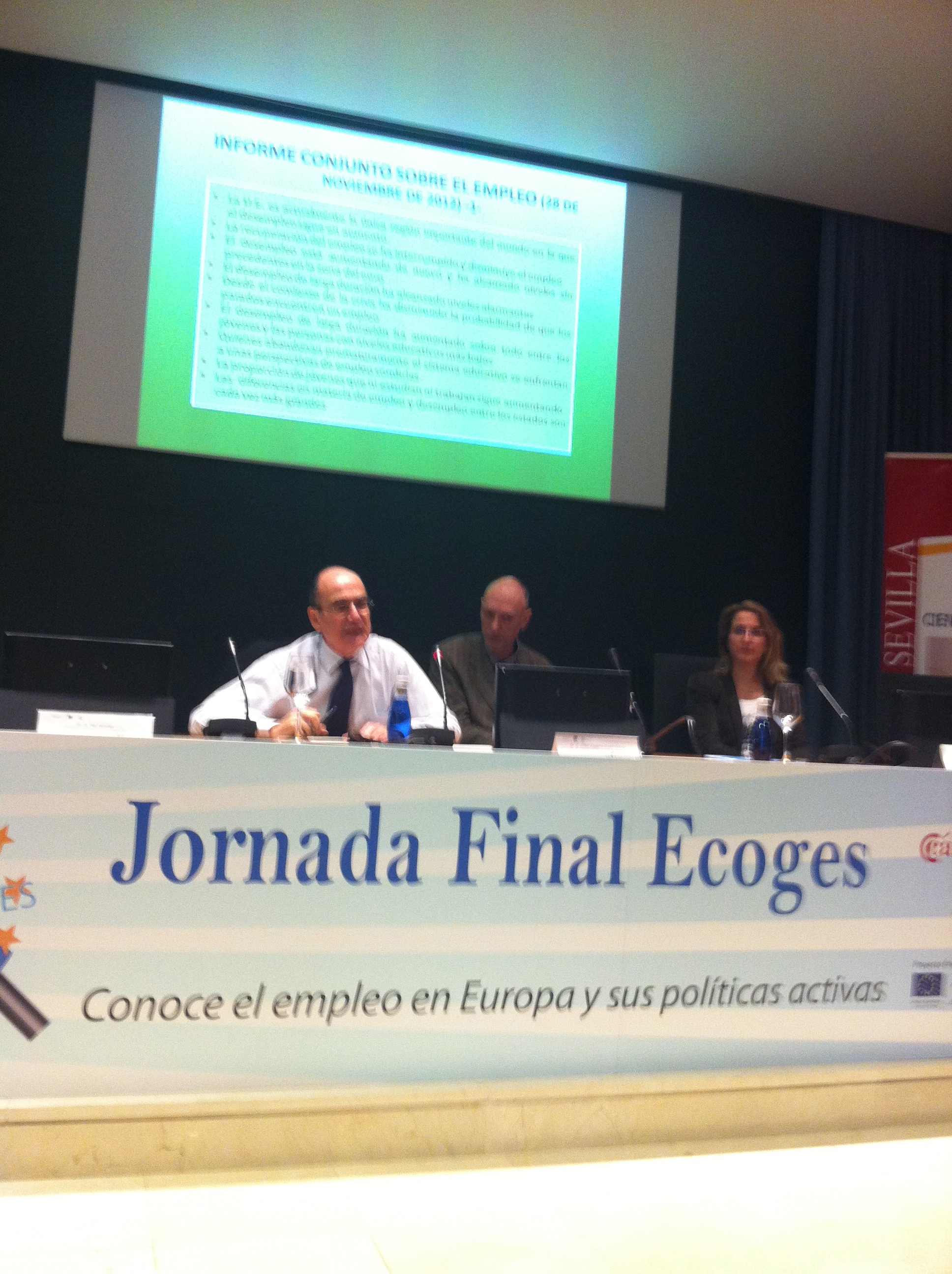 Con buen éxito de público se ha realizado la Jornada final de los Foros sobre el Empleo que en cooperación con el Consejo Andaluz de Cámaras de Comercio de Andalucía se vienen celebrando desde hace dos años. A la clausura asistieron el Secretario General del CACCIN, el Director General de Calidad de la Consejería de Economía y la Directora General de Formación Profesional de la Consejería de Educación, así como varios catedráticos y profesores de diversas Universidades, estudiantes y un importante grupo de técnicos de los Servicios de empleo andaluces, la mayoría del público.